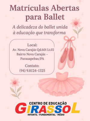 á mais de 20 anos, o Centro de Educação Girassol dedica-se a transformar vidas por meio de uma educação de qualidade na cidade de Parauapebas, Pará. Nosso compromisso é formar cidadãos éticos, preparados e capazes de enfrentar os desafios do futuro. Acreditamos que a educação é a base para um mundo melhor, e por isso unimos tradição, inovação e cuidado em cada etapa da jornada de aprendizado.
